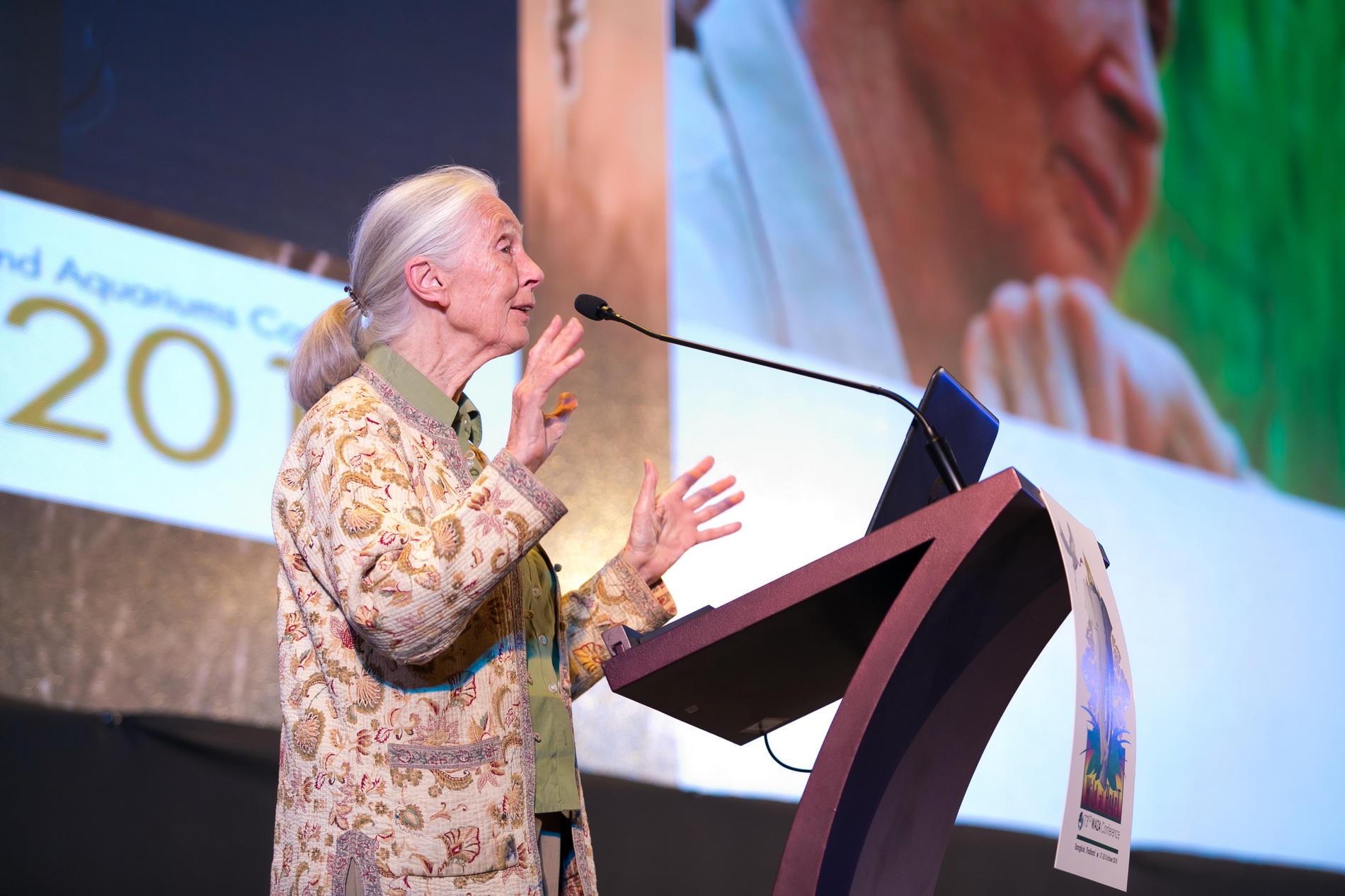 WAZA delegates also took the bold step of resolving to close the Pata Zoo, a dilapidated institution atop the Pata shopping mall in downtown Bangkok that includes endangered species such as gorilla, bonobo, rhinoceros hornbill, Komodo dragon, chimpanzee and orangutan among the 300 animals in the two floors of exhibits. Numerous WAZA delegates, including Dr. Goodall, visited the zoo during the conference and WAZA passed a resolution to help improve welfare and husbandry standards at the Pata Zoo, as it works with Thai government officials to close the zoo as soon as possible.