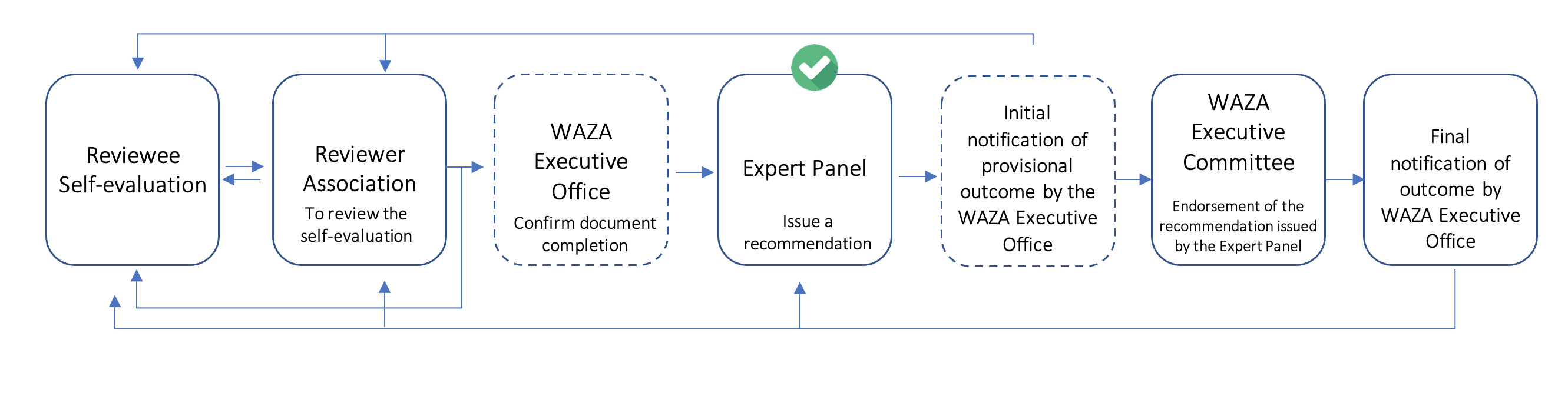 f) Once the report is finalised by the reviewer, it is shared with the WAZA Executive Office, issuing a recommendation on an outcome and for processing to the next stage.